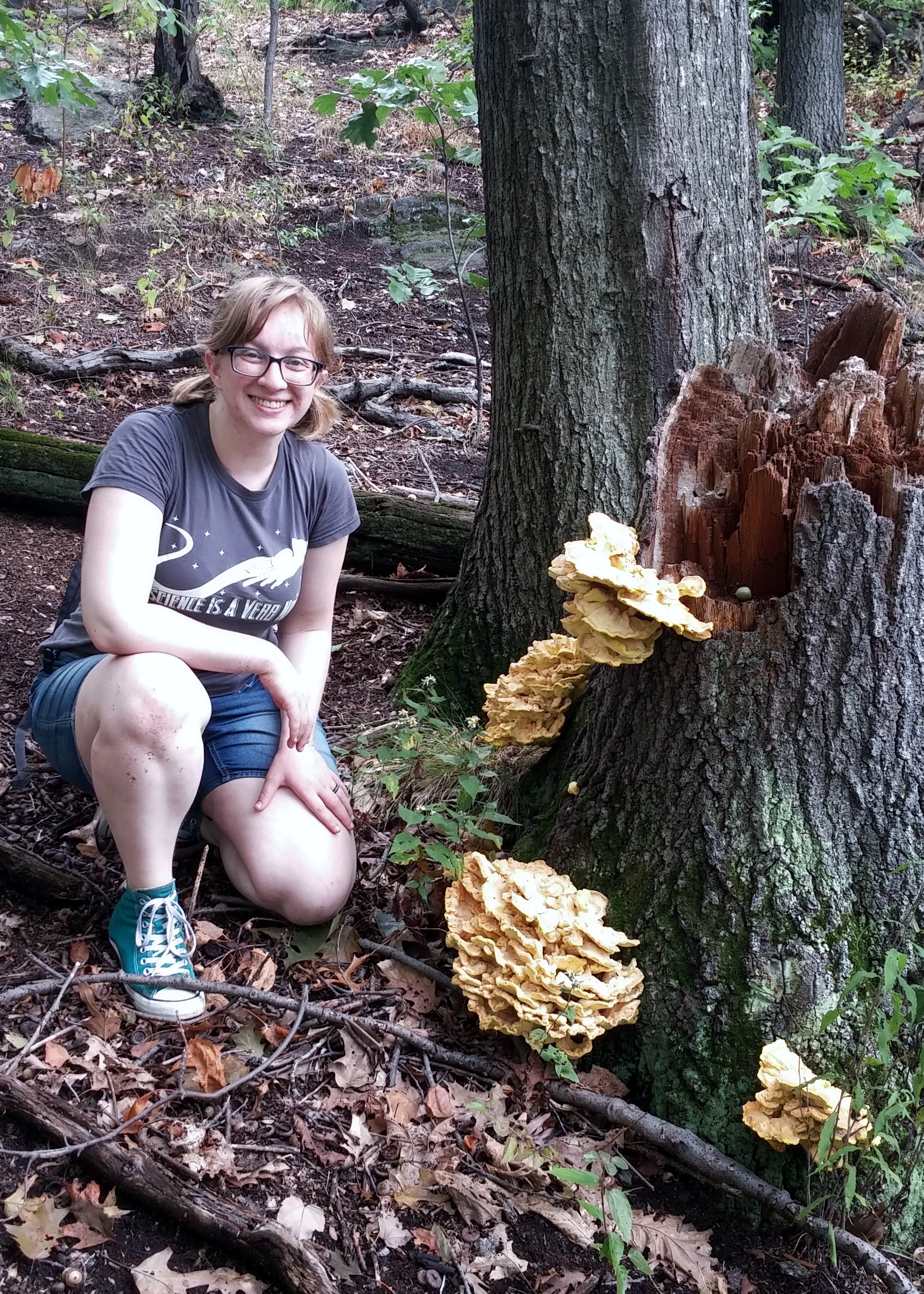 Fun fact: The last time I stumbled on a Sulfur Shelf of this size was in the New York Botanical Gardens, and wouldn’t you know it, I was wearing the same shirt!